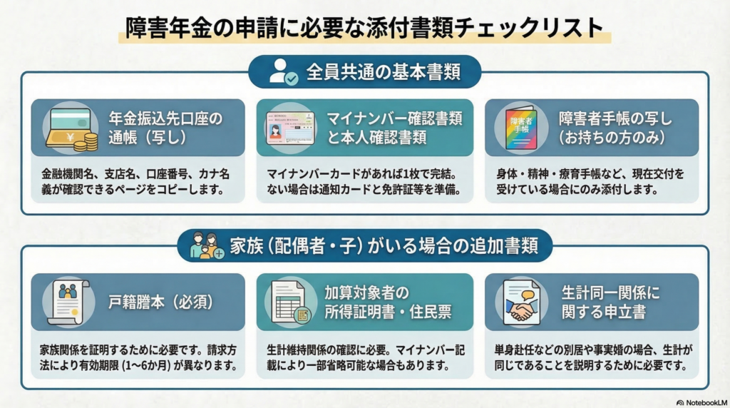 障害年金の申請に必要な添付書類まとめ!マイナンバーや戸籍謄本などケース別に解説